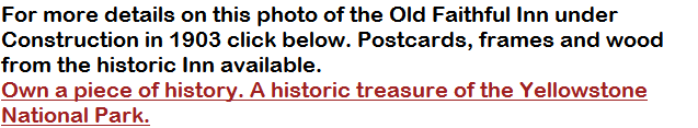 Other gifts are available, historical pictures and local history tidbits, Original Water Colors and prints by Robin Berry, Call us if you need some special. Bob has wood from the Lobby of the Old Faithful Inn circa 1938 maple that makes into a beautiful unique gift; into a picture frame for example.