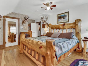 The King Cedar room features one of a kind cedar furniture on a Paul Bunyan scale. The motif is that of cowboys in years gone by. You may even hear the clip clop of horses in historic downtown. The king-sized bed offers you a good nights rest. The room has a private shower, wireless internet. Come downstairs and watch a movie, swing in the hammock between the blue spruce trees in the back, walk to a fine restaurant or bar, play a game of Scrabble or enjoy a cool drink on the back deck. Life in Cody is laid back and easy.